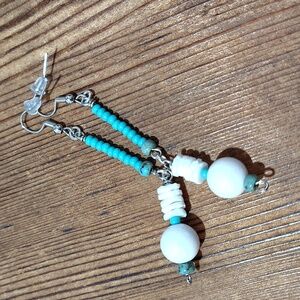 Blue and White Beaded Long Dangle Earrings / Handmade Ladies Earrings