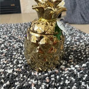 Enhance your home decor with these elegant pineapple-shaped jars. Featuring a stunning gold and white design, these jars add a touch of luxury to any space.