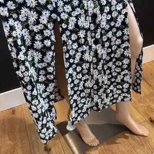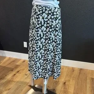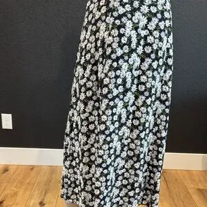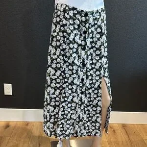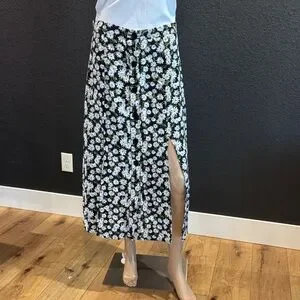 Elegant black and white floral skirt perfect for any occasion. Features a stylish slit for added flair.