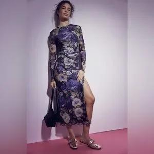 New free people Gianni mesh bodycon stretch long sleeve dress with ruched front, perfect for any evening
