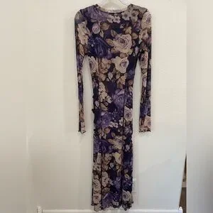 Free People Mesh Romantic Slit Maxi Dress Bodycon Whimsigoth Stretch Boho