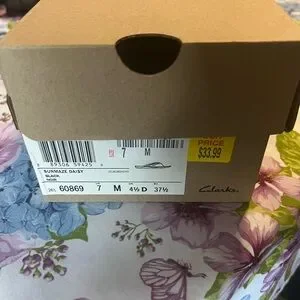 Clarks Black and White Slide Sandals Sunmaze Daisy size 7M