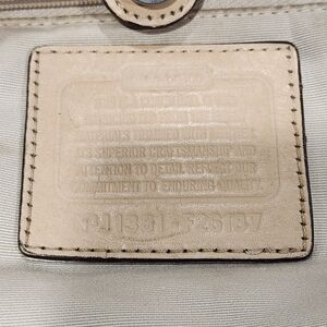 Classic Coach design featuring signature coated canvas with leather trim and gold-tone hardware. This structured everyday tote offers excellent organization with a double zip top and center compartment, making it perfect for work, travel, or daily use. In good pre-owned condition with normal signs of wear but still plenty of life left (use photos as part of description). Clean interior and fully functional zippers. Measures approximately 14" x 9"