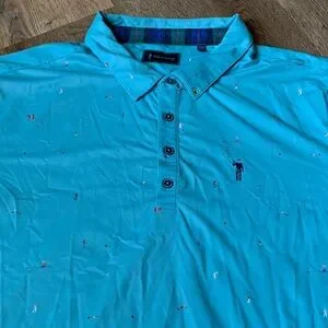 Vibrant polo with subtle golf-themed design. Perfect for golf or casual outings.