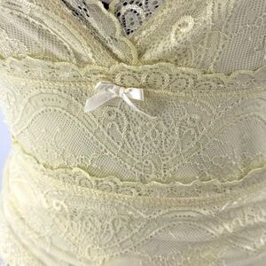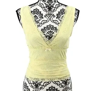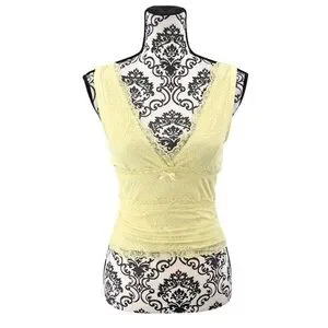 Pale Yellow Lace Trim Camisole Tank Top Y2K Lingerie Style S