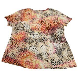 Chicos Women’s V-Neck Animal Print Top Size 3 Beige/Orange XL short sleeves