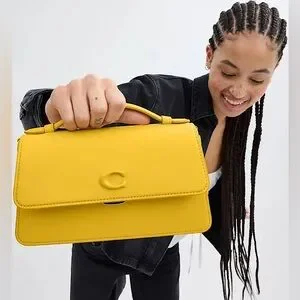 This is the convertible Juno bag from Coach in the gorgeous yellow color Canary. You can carry as a shoulder bag, as a crossbody or as a top handled clutch. This bag is like brand new because I only used it once. This listing comes with the dust bag, original tags & convertible straps.