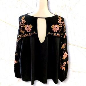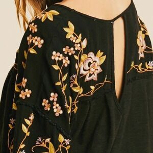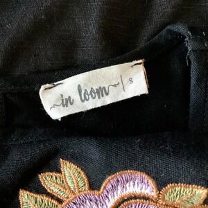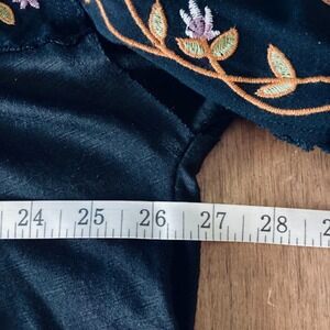 In Loom Blouse Boho Peasant Women's Small Black/Floral Embroidered Pleated Top