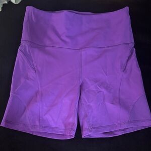 Stylish high-rise shorts in atomic purple. Perfect for workouts. In perfect condition only worn 2x. Cute mesh panels add great detail.