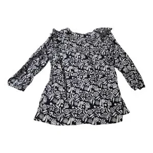 Add a touch of charm to your wardrobe with this Lyza Byrd long sleeve top in a size Large. Featuring a navy blue base with an allover white floral print, this 100% cotton blouse offers comfort and effortless style. The delicate ruffle details on the shoulders add a feminine flair, while the lightweight fabric makes it perfect for layering or wearing solo. Whether you're dressing it up for brunch or keeping it casual, this top is a versatile piece you'll reach for again and again.