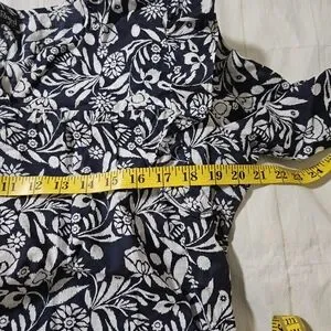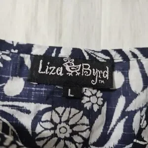 Lyza Byrd Navy Floral Ruffle Top Size Large 100% Cotton