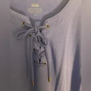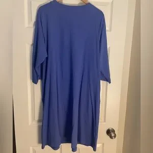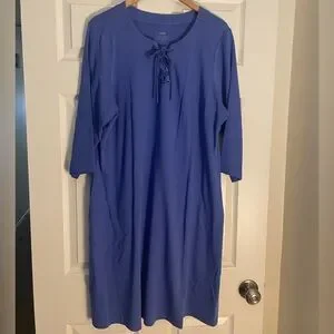 Stylish blue midi dress with lace-up neckline. Perfect for casual outings.