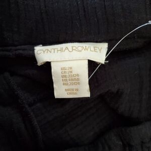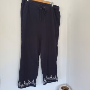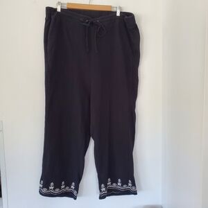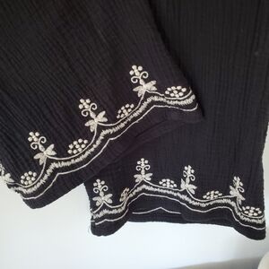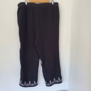CYNTHIA ROWLEY 2X Black Double Gauze Wide Leg Crop Pants White Embroidery Vacay