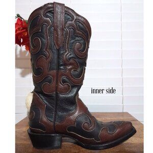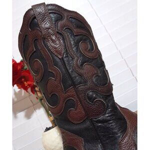 Women's Leather Tooled Snip Toe Brown Black J.B Dillon Cowboy Boots sz 7.5B