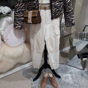 NWOT never worn Citizens of Humanity Greta two tone beige & sand cream cargo cotton linen surplus pants