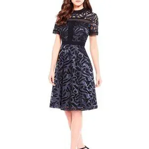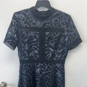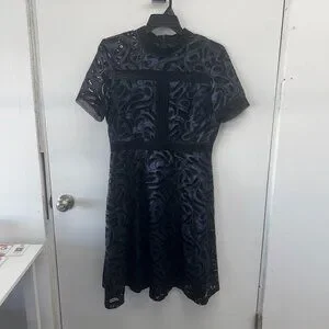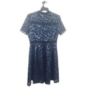 Antonio Melani Liva Black & Blue Lace Embroidered Fit & Flare Dress - Size 12