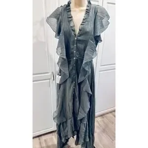 Elegant Gray Ruffled Maxi Dress