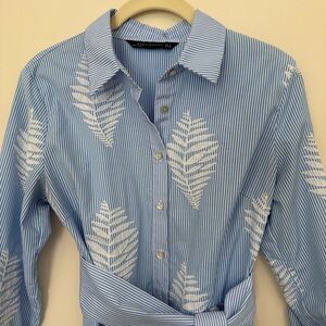 This elegant dress from Zara features a sophisticated long sleeve design in a striking blue and white color palette. Perfect for any occasion, its timeless style ensures you stand out with grace and poise.
