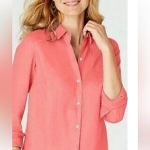 EUC J Jill Love Linen Essential Shirt Missy L Coral Long Sleeve