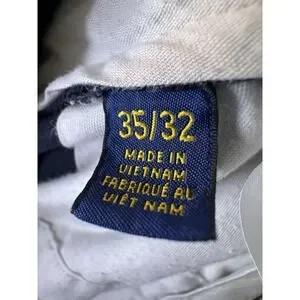 This product is a pair of Polo Ralph Lauren men's navy blue cotton stretch slim fit pants in size 36x30. The pants feature a solid pattern, zip closure, and a slim fit with a mid-rise. They are suitable for casual, workwear, and business occasions, and are made of a blend of cotton and elastane for comfort and breathability. The pants also have a straight leg style, flat front, and slash pockets with logo accents. Made in Vietnam, these pants are a stylish and versatile addition to any man's wardrobe, perfect for a preppy or polished look.