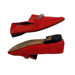 DOLCE VITA RED SUEDE SILVER CHAIN EMBELLISHMENT LOAFERS SZ 8