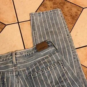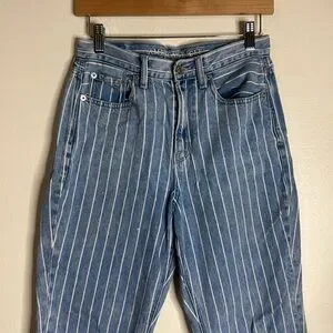 American eagle pin striped high rise mom denim ankle jeans size 4 festival cute