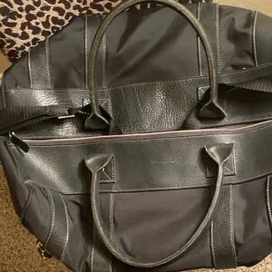 Stylish black leather bag perfect for any occasion. Durable and versatile, ideal for everyday use. No rips or tear heavy bag leather and canvas bag very durable