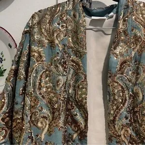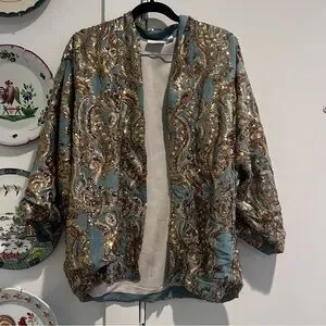 Dazzling sequins embellishment allow this kimono to dress up even the simplest of tees.