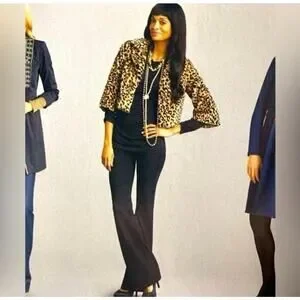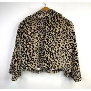 Cabi Lola Retro Cropped Faux Fur Leopard Animal Print Swing Coat Jacket 179 M