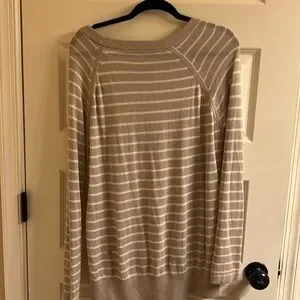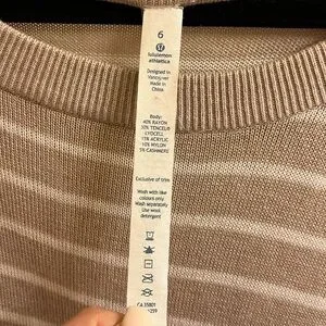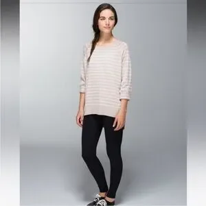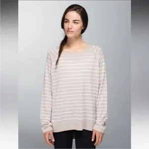 EUC Lululemon Post Savasana Striped Tan White Pullover Sweater- Size 6