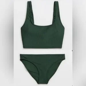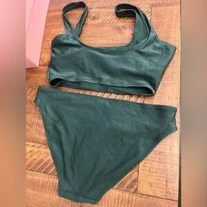 NWT Aerie FULL SET Shine Rib Longline Scoop Top + Full Coverage Bottom Sycamore