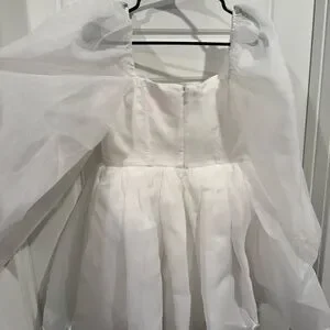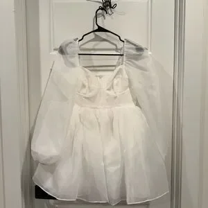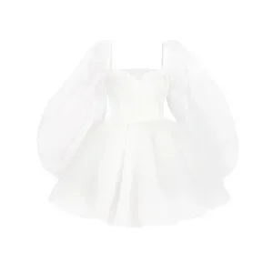 The Ivory Carousel Dress is a pristine organza mini, as fetching as a freshly plucked magnolia blossom. The demi cups create a structured yet feminine silhouette, while the sheer long puff sleeves and voluminous pleated puff skirt are as sweet and delightful as the moment you say “I do.” Wear it for a sophisticated high tea bridal shower or a playful bachelorette weekend.