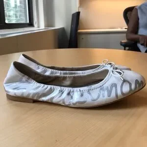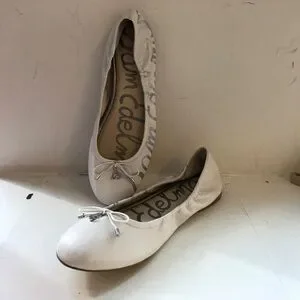 Sam Edelman White Leather Flats with Silver Accents