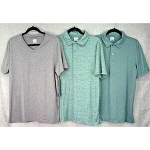 In like new condition. The polos have been worn once and the gray v-neck is new with tags. 20" across the chest and 27" in length on all of them. No stains, smells or defects. Clean smoke free environment.