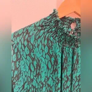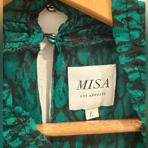Misa Los Angeles Emerald Ruffled Long Sleeve Dress, L