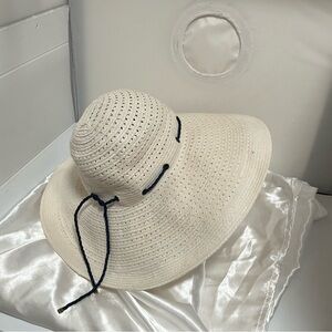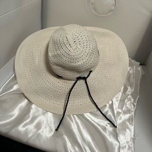 Chic cream sun hat with wide brim. Ideal for sunny outings.