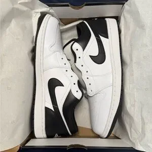 Elevate your look with these Jordan sneakers. Classic black and white design. Ideal for everyday wear. New with box. Not yet laced.
