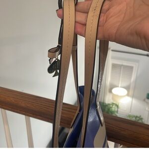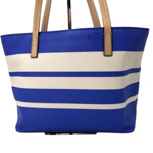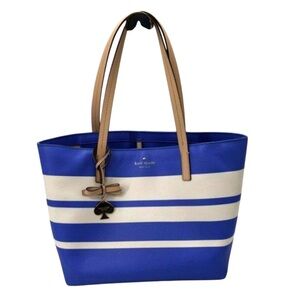 Stylish and spacious, this Kate Spade tote bag features a chic blue and white striped design. Perfect for everyday use, it combines elegance with functionality.