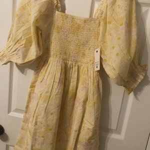 Billabong yellow sundress with a floral pattern. Features puff sleeves and smocked bodice. Perfect for sunny days. In like new condition, worn once for photos. Tags have been removed.