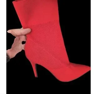 Brash Women's Xaya Red Mid-Calf Pointed Toe Stiletto Sock Boots or booties, size 8.
