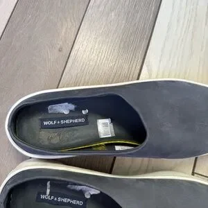 These loafers feature a sleek, slip-on design with a white and blue color scheme, perfect for casual outings. The minimalist style is complemented by a comfortable flat sole, ensuring ease of wear throughout the day. Ideal for those seeking a blend of style and comfort in their footwear.