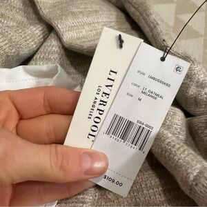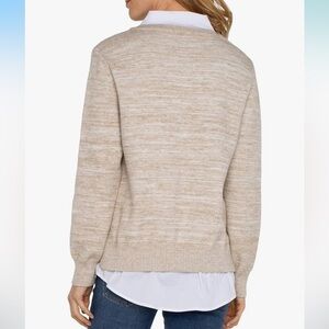 Liverpool Los Angeles Women's Long Sleeve Two-Fer Collared Sweater Mélange Sweater Yarn, Light Oatmeal Melange