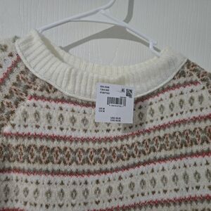 Stay warm and stylish with this cozy knit sweater. Featuring a classic cream and red pattern, it's perfect for any casual outing.