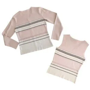 Petite Sophisticate Striped Sweater Set | EUC | XSP | Pink Cream Navy