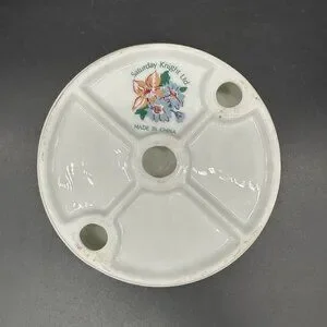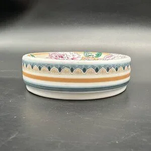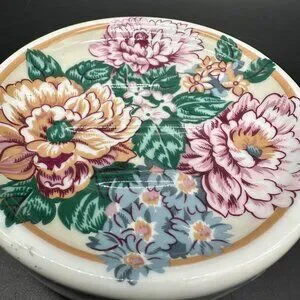 Vintage Soap Dish Floral Round Ceramic 1990s Flowers Bathroom Kitchen Decor