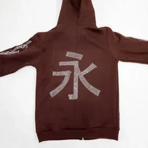 Mogul Full-Zip Hoodie - Brown Rhinestone Embellished - Y2K Streetwear - XS