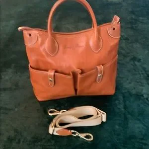This sophisticated Dooney & Bourke tote in a classic tan hue is crafted from premium leather, offering a structured and elegant appearance. Perfect for daily use, it boasts a spacious interior and durable handles for easy carrying. Its timeless design ensures it pairs well with any ensemble, making it a versatile addition to your wardrobe.