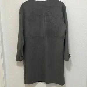 Elegant trench coat with sleek button design. Features rolled cuffs and spacious pockets. Perfect for any occasion.