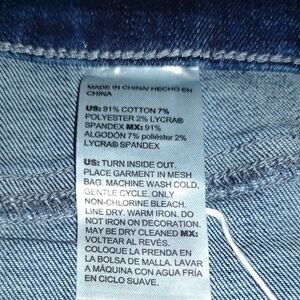 NWT Chico's marina bay indigo denim jeggings, Chico's size 2.5R or ladies' size 14R. Scattered red stones add sparkle to bottom of leg--see third photo.