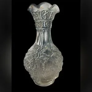 Beautiful frosted glass vase featuring intricate floral patterns. Perfect for home decor.